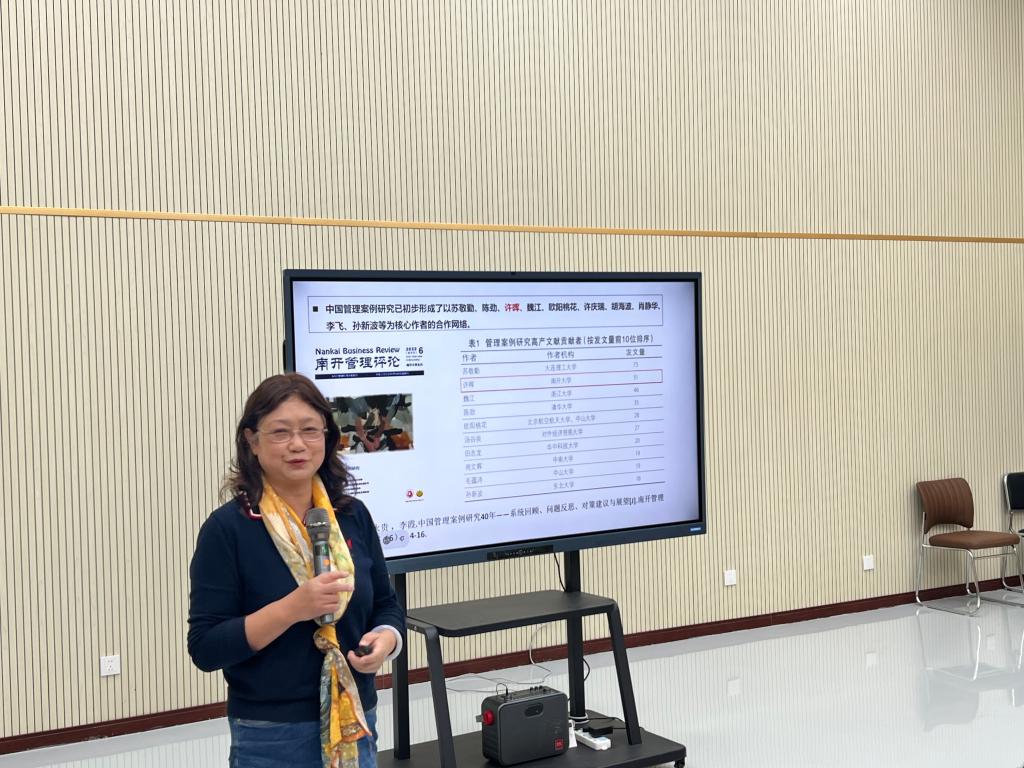 培训会上,许晖教授围绕案例教学与开发的核心议题,系统阐述了其在连接高校课堂与企业实践中的关键作用。她指出,案例教学是提升教师教学水平、培养学生综合素养的有效途径,案例能够有效帮助教师更新知识体系,为学生提供真实的管理情境,显著提升学生的决策能力、批判性思维及团队协作精神。