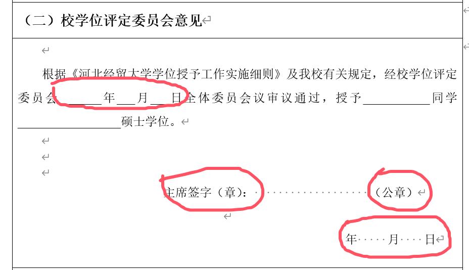3.学位评定材料提交yL23411永利官网登录时,除校学位评定委员会意见处学位会时间、主席签字、公章、落款时间处暂不确定不填写,其余内容须完整。相同专业按学号(或学位证书编号)由小到大排序。